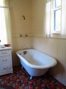 Preserved on the property is also the outhouse, of which the park keeper stated Marjorie often lamented that she hated, not just for the impractiality, but the look. So much so that any time she had guests, she would place herself at the head of the table, across from the window that overlooked her yard and at the eye sore. It makes sense that Marjorie's home was the first in all of cross creek to be fitted with plumbing. And when the renovation was complete in 19__, she invited the towns people over to share in the excitement. She threw a party and filled her new tub, with ice and water, to keep the drinks cold.